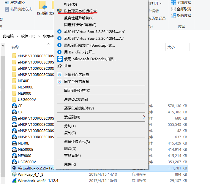 下载好文件包后解压,打开文件夹,右击VB软件安装包,选择以管理员身份运行,之后按照软件的步骤安装软件。(注意:安装VB时不可以将安装目录放置在包含非英文字符的目录中以防止在使用过程中出现错误。安装过程中将会出现短暂的断网情况,软件安装完成后即可恢复网络链接)