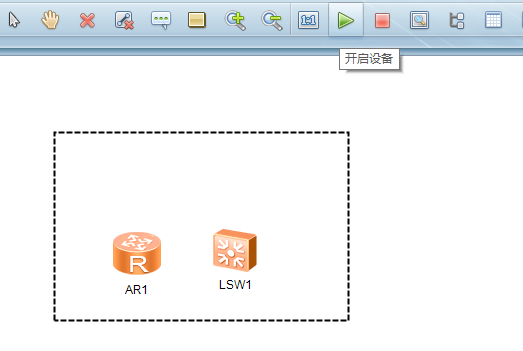 3)拖入设备后使用鼠标框选虚拟设备并点击开启设备图标进行虚拟设备的开机操作。